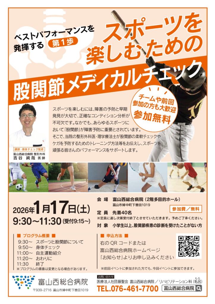 1/17(土)【参加無料】股関節メディカルチェック開催のお知らせ